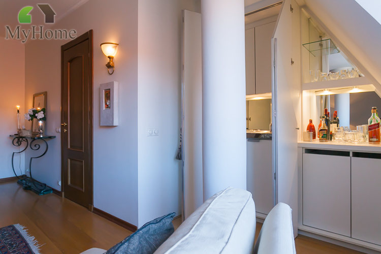 For sale truly elegant penthouse apartment in Old Town. The apartment is located in fully renovated historical building in the heart of Tallinn Old Town near the Town Hall Square. The apartment has very unique layout plan, its possible to use it as two separate apartments, there are also two entrances. Apartment comprises expansive living room, thanks to many large windows the room is bright and has lot of natural daylight. There opens up amazing views over the Old Town rooftops, Tallinn harbour and the sea; semi-open plan kithcen is fully fitted to a very high standards; the seaward wing of the apartment comprises 2 bedrooms and large bathroom; the other wing of the apartment has private entrance and it can be used as separate studio apartment. There is entrance with wardrobe, large room with kitchenette and bathroom.
