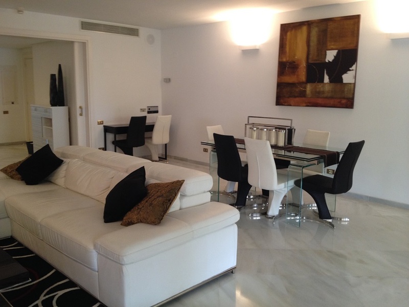 Spacious and bright apartment in one of the best buildings along the beach of Marbella. Don Gonzalo is a luxury building with spacious common areas filled with lush gardens with fountains, walking areas and two large pools. High security with a sophisticated surveillance system that includes individual alarms connected to the security checkpoint at the entrance of the building. The community has 24-hour concierge and the ground floor has glassed hallways where the elevators are located. The entire facade of the building is covered with unpolished marble. The location is excellent, within walking distance to many shops, restaurants and the beach.
