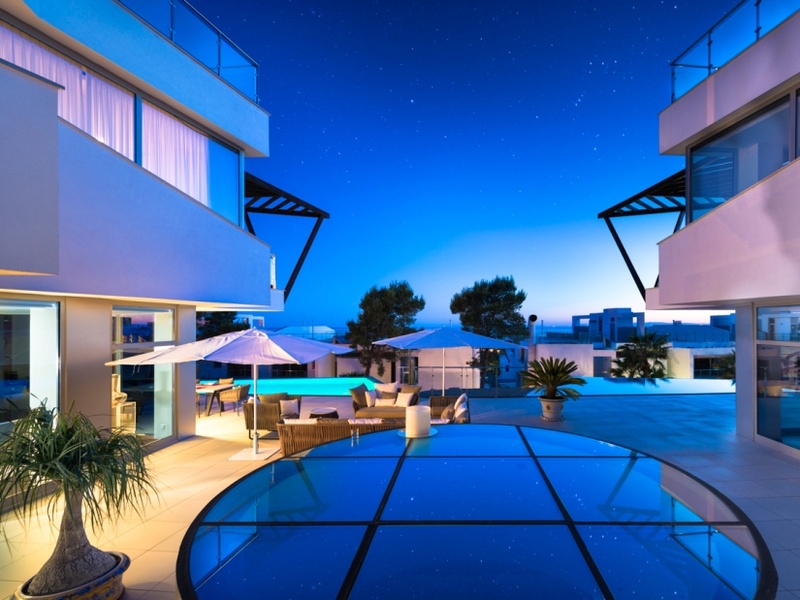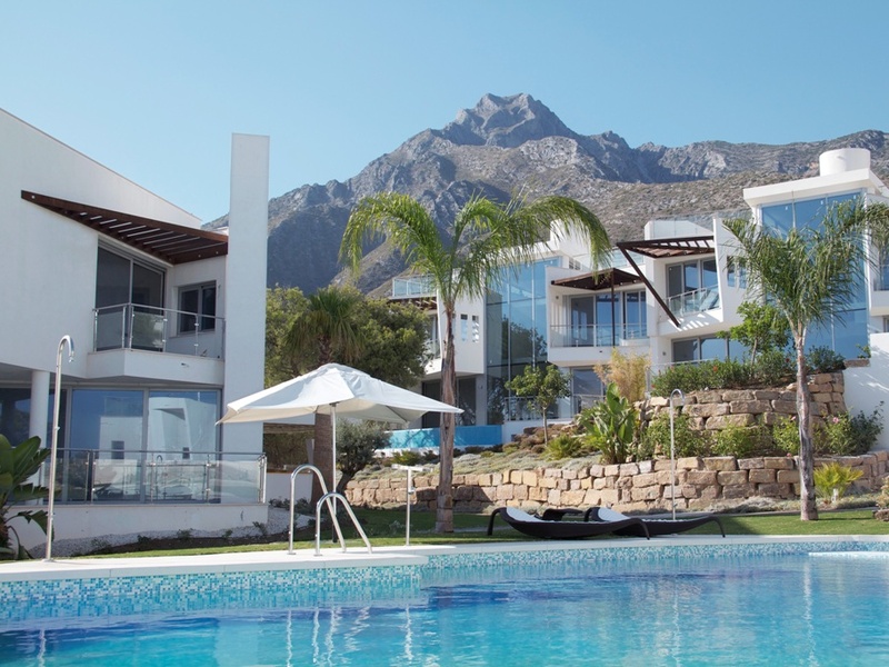 All of the 2, 3 and 4 bed contemporary homes have been carefully designed with luxury, comfort and convenience in mind. Each property offers a unique take on the original design, with fantastic use of light and glass, including floor to ceiling windows, which aims to make the most of the spectacular views, and allow for the maximum amount of natural light to brighten the rooms. Featuring large, open and light living/ dining rooms, with fireplace, and finished with high quality natural stone and contrasting dark Wenge wood flooring, with large floor to ceiling windows/ doors to the large stone terrace and spectacular views from sierra Blanca. The kitchens are very spacious and bright, with all modern luxury appliances, including a built-in wine fridge. Each property has bright and spacious en suite rooms, designed with comfort and the best utilization of space in mind, with excellent closet space and large luxurious bathrooms. The master bedrooms also have floor to ceiling windows, a private terrace and panoramic views. All units have private and enclosed underground parking for 2 or 3 cars. For convenience all properties have a home automation system installed controlled by iPad, which gives you control of all aspects of the home, from alarms, to electrical blinds, lights, music, heating etc. Also, items such as alarm, plumbing etc. can be connected to security services, so should there be a problem when you are not home this can be investigated and solved. The larger of the 3 bedroom and all 4 bedroom homes have extra features to add to the luxurious feel of the property, including private elevator, plunge pool on the ground floor terrace and large rooftop solarium.