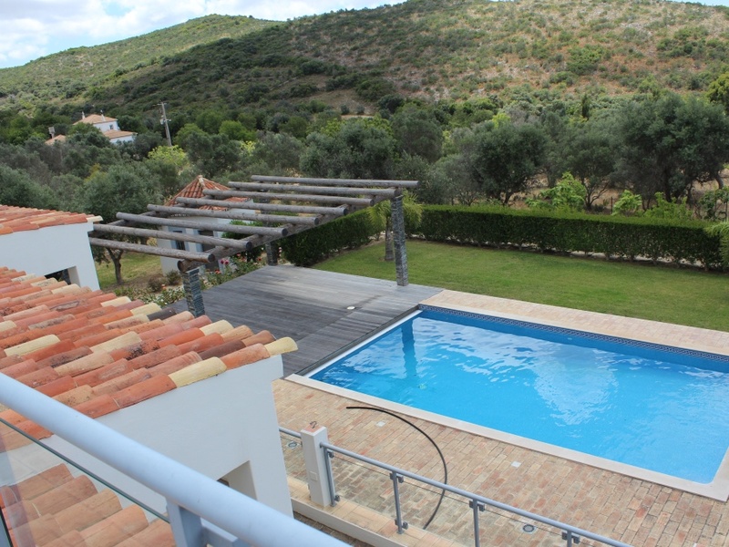 New luxury 3 bedroom villa located next to Santa Barbara de Nexe. Property built for 3 bedrooms all of the en-suite, totally equipped kitchen with the brand of Bosch, spacious living room with the fire place and terrace with the amazing sea view. Property has pool with automatic cover and prepared for heating, automatic irrigation of garden ,open space for BBQ, spacious terraces , all rooms have under floor heating, electrical shutters, pre-installation of A/C , all bathrooms built by materials of high quality, property completely fenced and have alarm system. International airport located just in 15 minutes from the property, Santa Barbara de Nexe located just in 5 minutes drive.