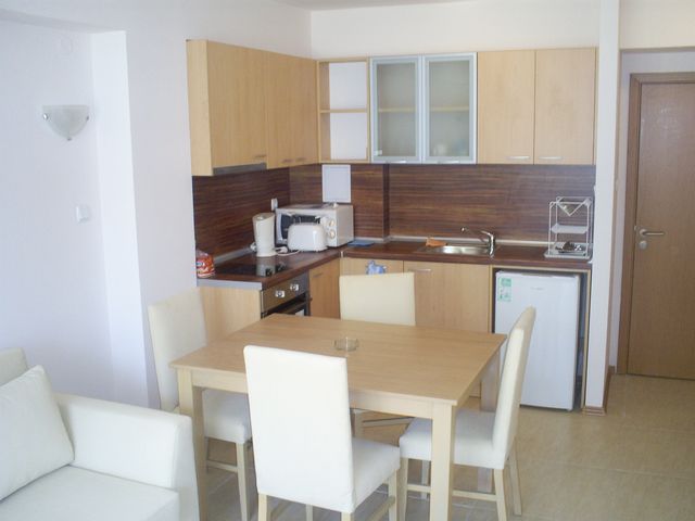 Двухкомнатная квартира в Солнечном Береге в популярном комплексе, построен на площади в 8000 квадратных метров и находится всего в 250 метрах от пляжа. Квартира включает: • Кухня, столовая и гостиная. • 1 спальня, которая может вместить до 6 человек. • 1 ванная комната. • 2 диван-кровати • 2 односпальные кровати • Гардероб • Обеденный стол и стулья • Посуда • Столовые приборы Совершенная конструкция здания позволяет наслаждаться солнцем в течение дня, и предназначен для пожилых людей, детей, домашних животных и курящих / не курящих. Комплекс включают в себя: • Безопасность (24 часа) • CCTV наблюдения • Тренажерный зал • Бассейн для взрослых и детей • Бар у бассейна • Ресторан • Магазины • Парковки