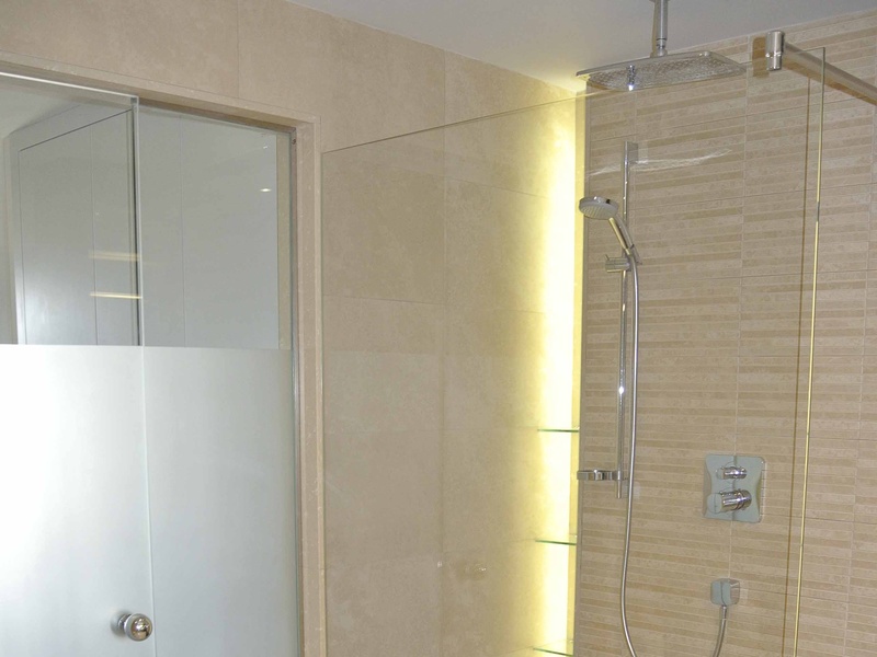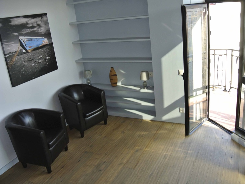 Две ванные комнаты (одна с ванной, другая с душем), просторный зал (обеденная зона и зона отдыха) с выходом на террасу, с которой открывается отличный вид на парк и видно море.