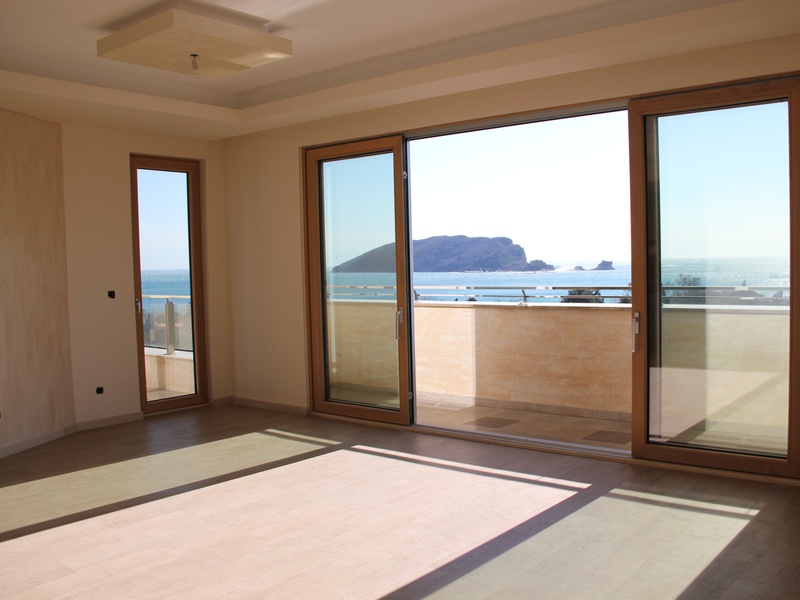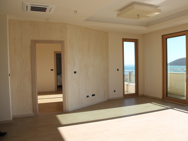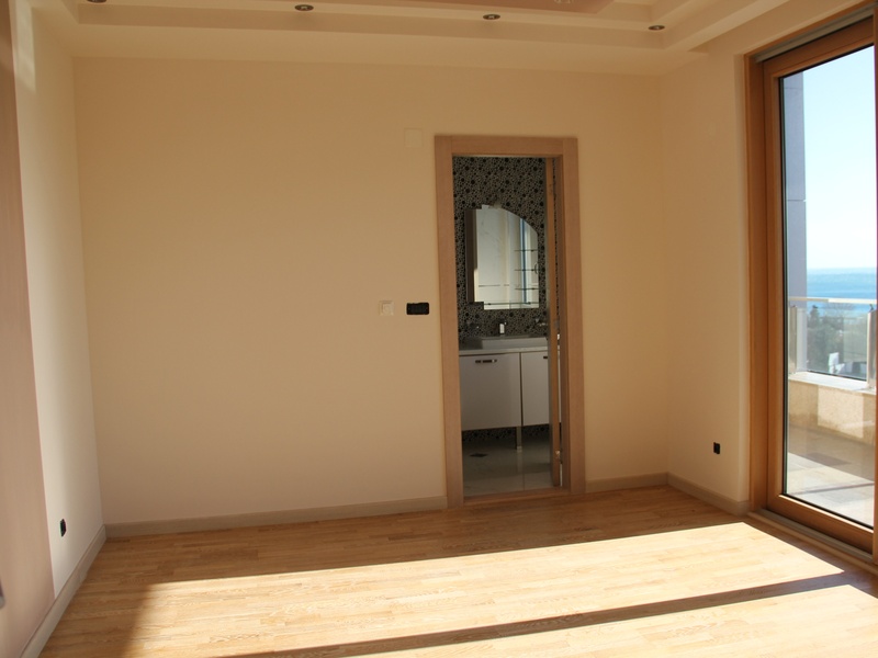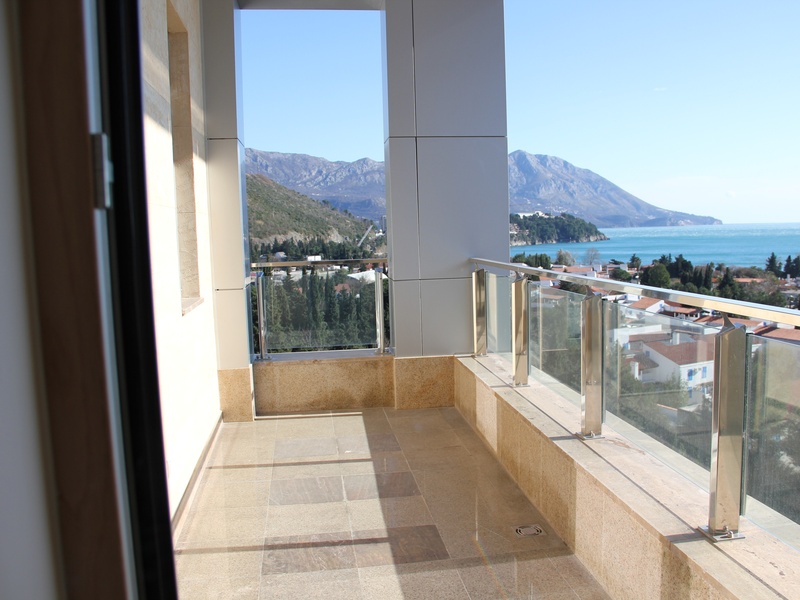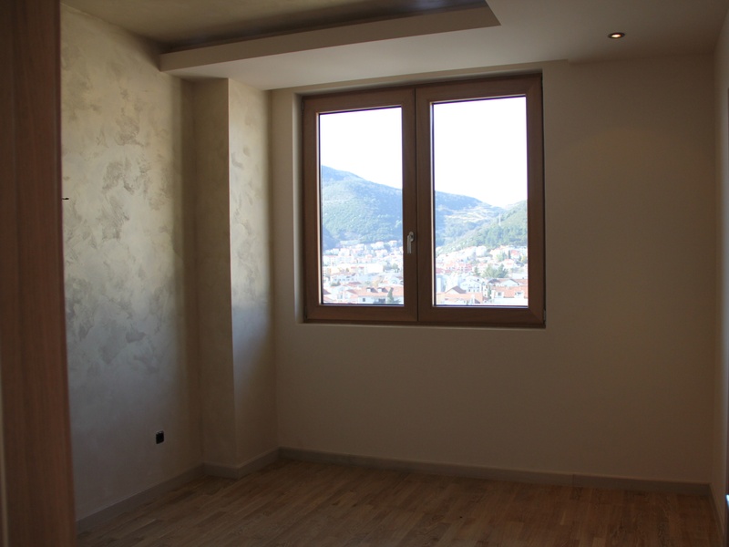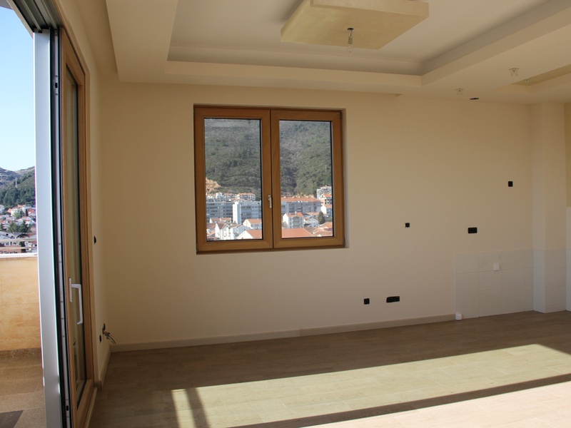 From the panoramic windows of the apartment offers breathtaking views of the sea and Budva, with a ceiling height of 4 m. Thin aluminum profile allows you not to close a nice view of the sea and the city, but the noise does not enter your home because the apartment is equipped with high-end aluminum glazed with heat chambers. On the floor, Italian ceramics PORCELANOSA. Equipped suspended ceiling with optional contour lighting.