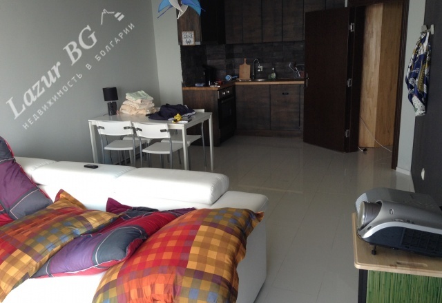 The apartment is located 100 m away from the beach, in a close proximity to the pedestrian street. Ideal place for a quiet summer holiday and the all-year-round living. The apartment is located on the third floor of a five-storeyed residential building. The total area of the apartment is 62 sq.m. it consists of a living room with a kitchen, a corridor, a bedroom, a bathroom, and a terrace. Beautiful sea view from each room and the terrace! The apartment is fully furnished and equipped.