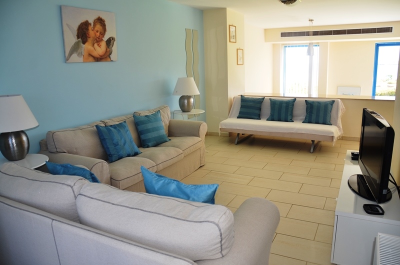 Absolutely stunning, Mediterranean style, spacious holiday villa in a fantastic location on the seafront, right in the heart of Protaras. The famous, extremely popular Fig Tree Bay is just a 1-minute walk away.This huge villa is comfortable, roomy, spacious and airy. Shops and restaurants are just a short walk away. This tastefully decorated spacious villa really is as luxurious as it gets with its high-quality marble finishes in the bathrooms and a luxury basement with a built-in jacuzzi, sauna and fitness machines. Just a few steps below the ground floor there is a bedroom with twin beds and a separate shower room. The ground floor is open plan and incorporates a fully equipped kitchen, dining area and living room with spectacular sea views. On the first floor there is a separate TV room, guest WC and a large bedroom with double bed and ensuite bathroom. The top floor incorporates an additional 4 bedrooms, the first with two twins beds and the rest with double beds and all with an ensuite bathroom. The villa is attached to green area and incorporates a large garden at the front with build-in barbeque and outdoors lounge where you can enjoy the amazing view and scenery.