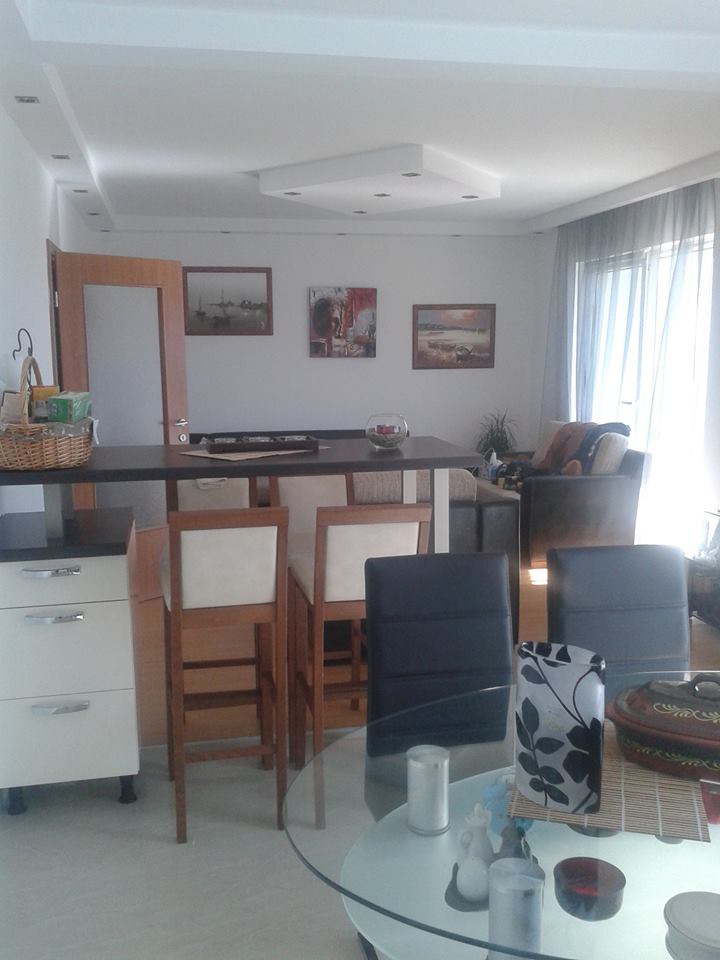 Продается отличная новая квартира в замечательном курортном городе Будва в Черногории. Квартира расположена на втором этаже пятиэтажного нового дома. Дом построен и сдан в эксплуатацию в 2011 году, расположен в живописном тихом месте. В доме всего восемь квартир. Общая площадь квартиры – 89 кв.м, жилая – 76 кв.м, площадь кухни – 10 кв.м. В квартире две раздельные спальни, уютная гостиная и кухня-столовая; два санузла; просторная прихожая и три балкона. Из окон открывается чудесный вид на приветливое теплое Адриатическое море и горы. Состояние квартиры отличное: выполнен качественный ремонт. Квартира обставлена удобной и функциональной мебелью, оснащена современной бытовой техникой: три кондиционера, два бойлера; в квартире есть интернет, кабельное и спутниковое ТВ, вся необходимая кухонная мебель и техника. Дом обеспечен всеми современными технологическими средствами защиты и управления: датчики движения освещают коридоры и подъезд при вашем перемещении по дому; домофон и камеры видеонаблюдения защитят вас от непрошенных гостей; дистанционный пульт управления избавит от необходимости выходить из вашего авто при въезде в гараж или на парковку. Рядом с домом – тихий и уютный двор с собственным бассейном, баней-сауной. Дом расположен в очень тихом и спокойном месте: из окон вашей квартиры вы сможете наслаждаться пением соловьев летом. Городской шум не беспокоит жителей этого дома. Несмотря на то, что дом расположен в столь спокойном месте, до всех благ курортного города буквально подать рукой: до моря – 500 метров приятной пешей прогулки. Рядом находятся школа, банки, аптеки, замечательный парк, древний монастырь, магазины, спортивные площадки, больница, автостанция и полиция. Замечательные Черногорские дороги и ваш автомобиль помогут доставить вас в любую точку Будвы и Черногории. Вместе с квартирой продается гараж и парко место. Стоимость гаража – 15000 евро. Парковочное место стоит – 10000 евро. Цена и условия продажи обсуждаются.