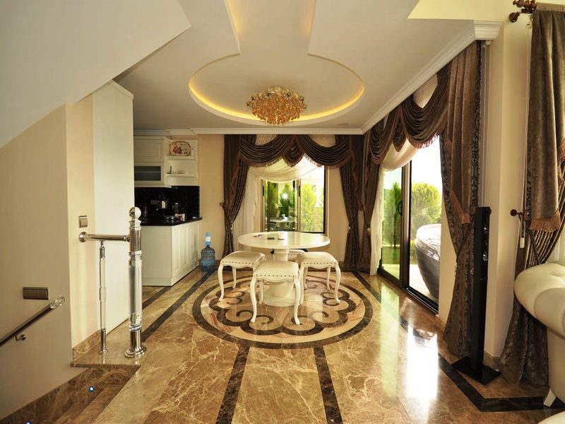 Вся территория резиденции сделана по индивидуальному заказу. Начиная от дизайнерского ремонта и заканчивая шикарной мебелью.