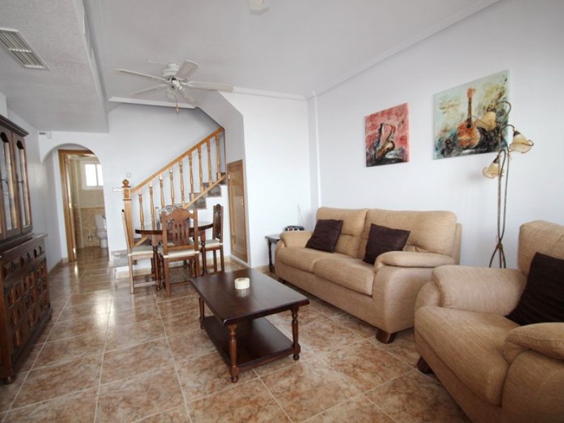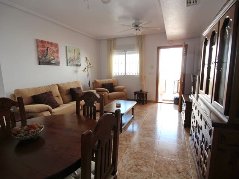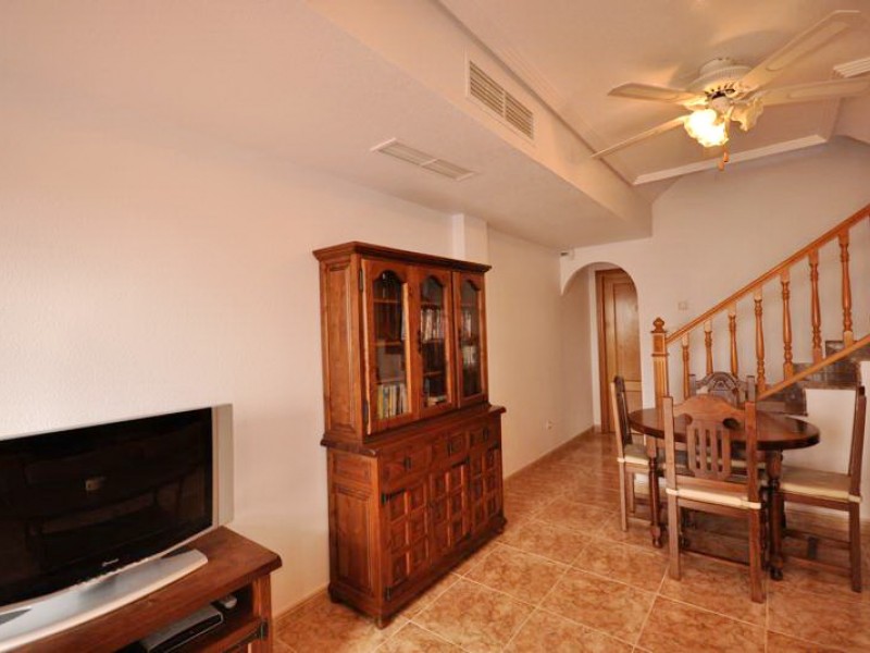 На продажу выставлен отличный вариант — дуплекс на Коста Бланка в тихой зеленой урбанизации «Ciñuelica». На первом этаже расположен холл, полностью оборудованная техникой и мебелью кухня, ванная комната. На втором этаже две спальные комнаты и санузел, а также есть выход на небольшой солнечный соляриум.