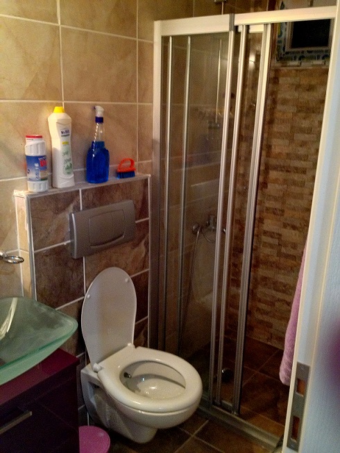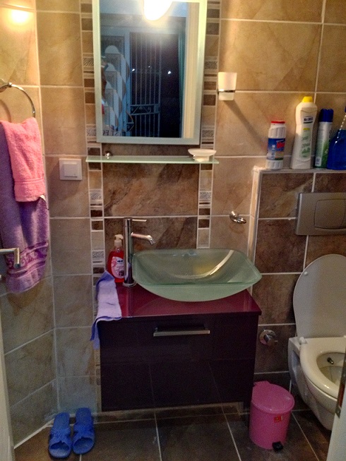 Квартира на первом этаже, кухня совмещенная с салоном, установлены кухонные шкафы. газовая печь, вытяжка, есть холодильник, вся необходимая посуда, полотенца. пастельное белье, стиральная машина, кондиционер, раскладной диван, телевизор, спутниковая система с русскими каналами, платинной шкаф, стенка- горка. В ванной комнате душ кабина. на окнах решетки, балкон с выходом в садик. Квартира рассчитана на 2 взрослых, может быть дополнительное место для ребенка.