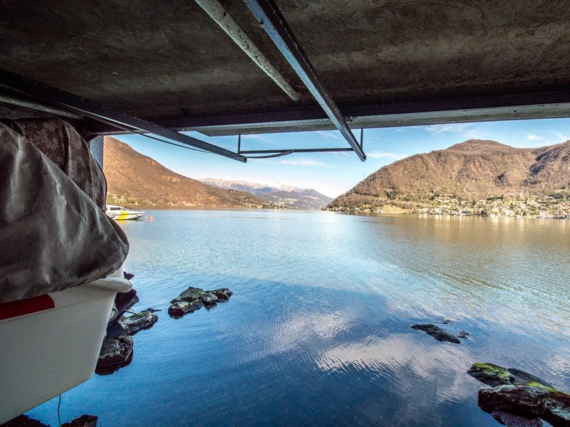 A spectacular view on the lake, the Alps and Swiss Middle Ages town Morcote with its church opens from villa’s terrace, living room panoramic windows and two of four rooms. A fast motor boat located in its dry dock in lower level is ready to bring you for a splendid ride (boat is included in proposal).