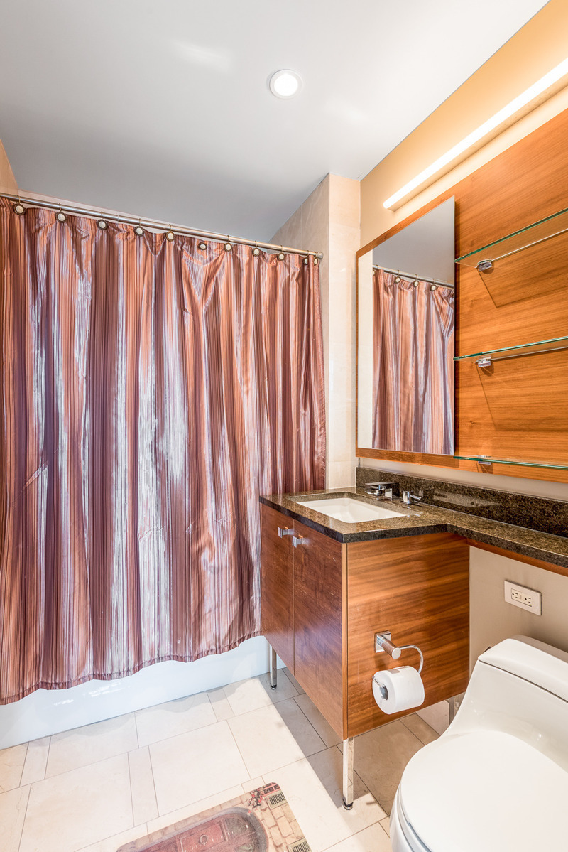 This penthouse unit features oak hardwood floors throughout, floor to ceiling windows, massive 12 foot ceilings, granite kitchen counter, stainless steel appliances, plenty of closet storage, marble bathroom floors, Kohler soaking tub, and a convenient washer and dryer included in unit. The master suite can easily fit a king sized bed with the second bedroom with a glass enclosed separate shower, bathtub, dual sinks, in the master bath.