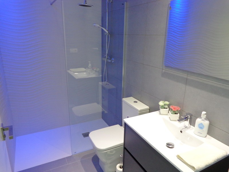 Внутренние ступеньки ведут к двум двухместным спальням со встроенными шкафами, одной ванной комнате и, наконец, террасе-солярию площадью 18 м2, откуда открывается прекрасный вид на природный парк Салинас де Ла Мата и озеро.
