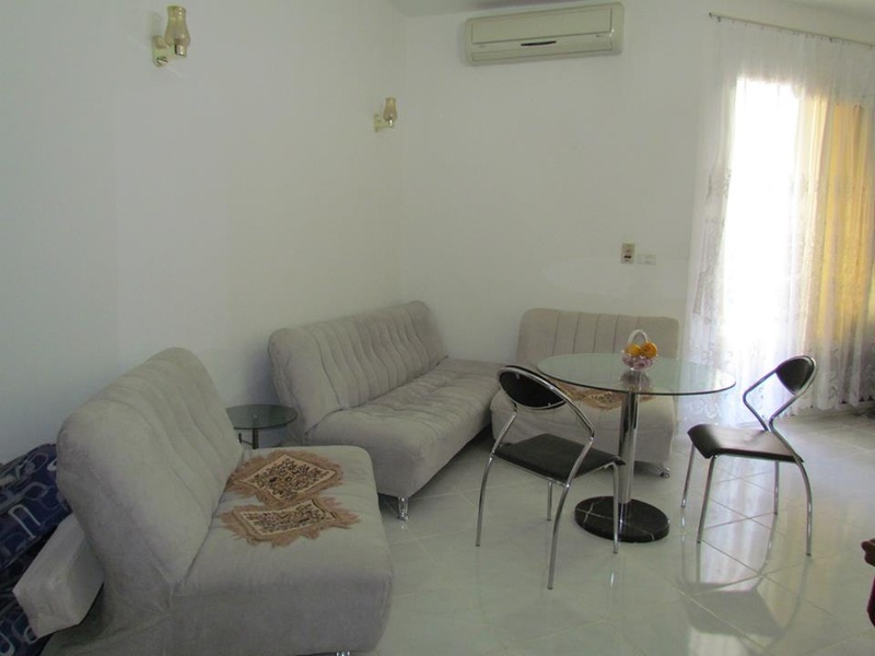 Area of 45 m2, 4th floor with lift. Large living room with open plan kitchen and bedroom, balcony with pool view, bathroom. Furniture, 1 air conditioning. Private beach with Shuttle service, heated pool, Internet, security. . The roof overlooking the sea, common areas equipped with sun loungers. On site fitness room, a sauna, a beauty salon. The complex has beach access!