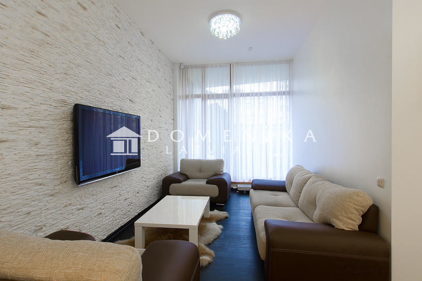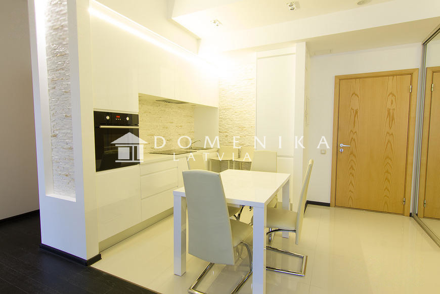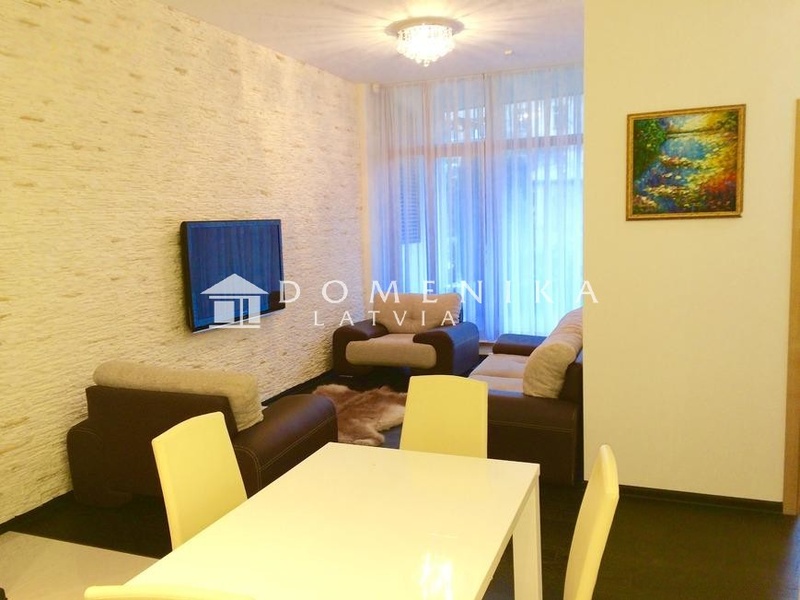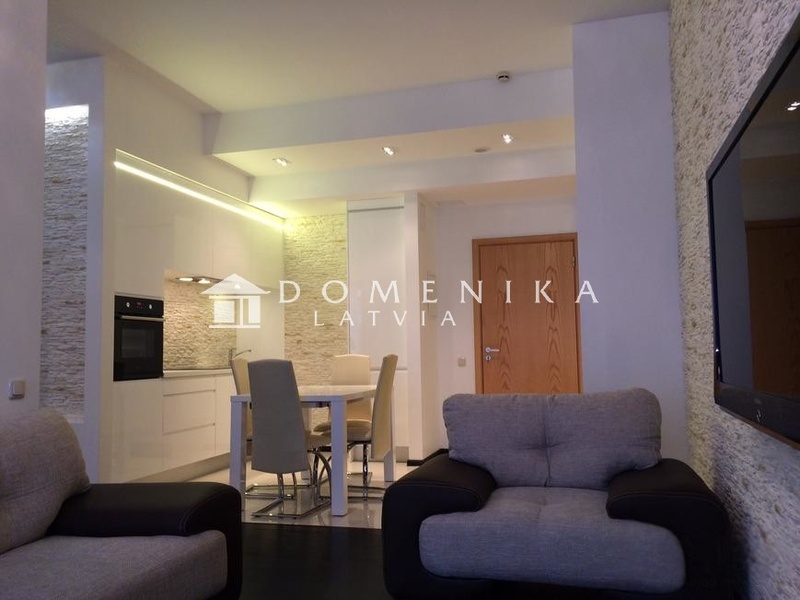 "Thomson Terrace", a wonderful view, from the windows of each room you can exit to the huge terrace with children's playground, walkways, swimming pool. The project is located in the quiet center of Riga with great developed infrastructure, surrounded by banks, restaurants and cafes, as well as various recreational and sports complexes. Apartment comfortable and well thought-out layout: a spacious living room combined with kitchen area, guest bathroom, 2 bedrooms, one of them is also a cloakroom and separate bathroom. The apartment is fully furnished and equipped with all necessary household appliances. For Your safety and comfort take care of physical security, as well as all day-there is a video observation. Residential complex available on the terrace on the top floor, which, thanks to its pleasant presentation, is a great place for relaxation apartment owners and their guests.Can be found on our website by ID221633.