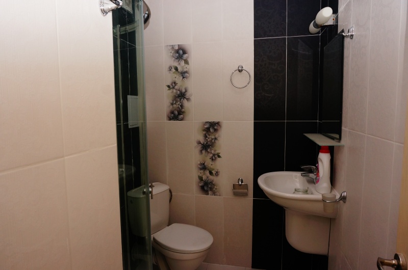 Ванная и саузлы оборудованы всей необходимой сантехникой и зеркалами. Пол - керамическая плитка/ламинат, стены - декоративная штукатурка. Установлены кондиционеры, стеклопакеты, межкомнатные и входной двери, бойлер, розетки, выключатели.