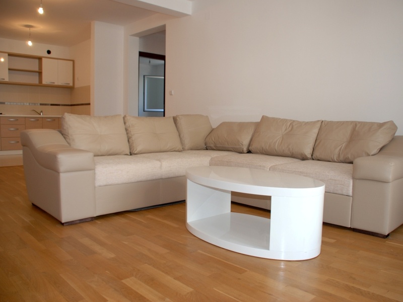 Spacious two bedroom apartment in a new building, Budva, Podkosljun.The house is located in a very convenient place for permanent residence or to stay in the summer. The apartment consists of a hall, a large living room with dining and kitchen areas, two bedrooms, two bathrooms and a spacious terrace, where there is access to two rooms. From the terrace overlooking the sea, city and mountains. The apartment is located on the second floor. About 300 meters from the sea (10 minutes leisurely pace), equipped beaches and Budva promenade, just 50 meters from the house - developed infrastructure - a major grocery store, restaurants and cafes, a school, a playroom for small children, bus stop, taxi rank, etc. Highly liquid type of real estate for rental because it has a minimum distance from the sea and, at the same time, an excellent location in a quiet location demon sound of clubs in the summer.