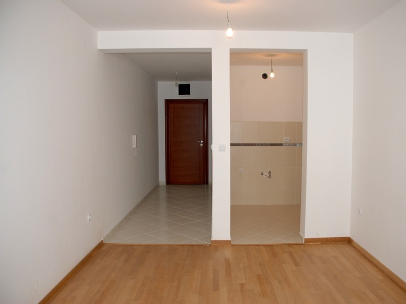Spacious two bedroom apartment in a new building. District Podkoshlyun. Apartment - Studio, 30 m2 - consists of a hall, bathroom with shower, a living room and a separate kitchen, with a small terrace overlooking the sea and the mountain. The house is located in a very convenient place for permanent residence or to stay in the summer. From the terrace overlooking the sea, city and mountains. The apartment is located on the second floor. About 300 meters from the sea (10 minutes leisurely pace), equipped beaches and Budva promenade, just 50 meters from the house - developed infrastructure - a major grocery store, restaurants and cafes, a school, a playroom for small children, bus stop, taxi rank and more more. Highly liquid type of real estate for rental as it has a minimum distance from the sea and at the same time, an excellent location in a quiet location demon sound of club music in the summer.
