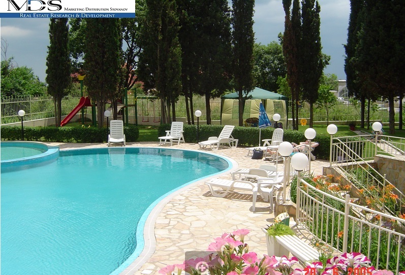 Предлагаем на продажу студию в апарткомплексе на курорте « Св.Св. Константин и Елена». Квартира № 5 находится на 1 этаже пятиэтажного кирпичного дома , имеет общую площадь 48,25 м2. Планировка : большая комната с кухонным уголком, ванная комната с туалетом , балкон. Квартира продаётся полностью обзаведённая мебелью и бытовой техникой . Окна выходят на бассейн. В распоряжение собственников предоставляется закрытый двор с красивым дизайнерским озеленением , бассейн, барбекю, в подвальном помещении имеется закрытый бассейн , сауна , стиральное помещение, имеется паркоместо. Дом находится в 500 метрах от моря , пляжей и знаменитых термальных минеральных источников. Годовая поддержка составляет 10 евро за 1 м2. Подходит как для круглогодичного проживания , так же и для отдыха , есть возможность сдачи квартиры в аренду в ваше отсутствие. Рядом находятся магазины , супермаркеты 24 часа , множество кафе и ресторанов. Курорт «Св.Св. Константин и Елена» расположен в 10 км . от центра города Варны и в 8 км. от курорта « Золотые пески». Один из немногочисленных курортов где сохранен зелёный массив леса. Очень тихий и спокойный курорт , подходящий для проживания и отдыха с детьми , для пожилых людей и для людей которые устав от шума повседневной жизни хотят провести свой отпуск в тишине и покое. Рядом находятся пляжи и море ,а так же 2 платных бассейна с минеральными термальными источниками (один 5 евро , другой 2.5 евро ) за целый день и один бесплатный . Вода в них имеет неповторимы состав который лечит , облегчает и предотвращает многие заболевания опорно- двигательной системы, успокаивает нервную систему и др. Температура в них держится около 38 градусов, вода пригодна для питья. Поэтому принимать ванны с данной водой можно круглогодично.