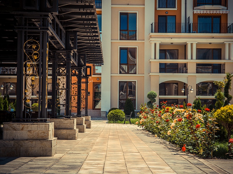 На территории комплекса расположены дополнительные удобства: бассейн, бассейн для детей, фитнесс зал, массаж, ресторан с летней площадкой, теннисный корт и футбольное поле, детские площадки, зона для отдыха, магазин, охраняемый паркинг, прачечная, круглосуточная охрана и обслуживание.