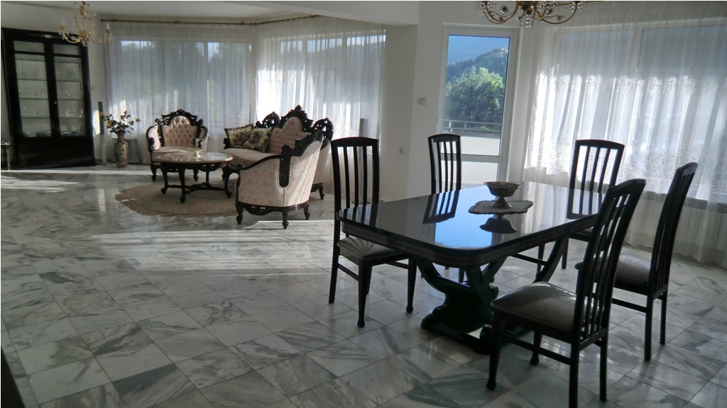Великолепный, элитный, трехэтажный, полностью меблированный особняк, с асфальтированной дорогой к нему, в с.Кокаляне, в 6 км. от Софии. Расположен над Панчеревским озером, с прекрасным видом на горы, лес. Чистый воздух, тишина и покой. Три уровня плюс сутерен, в котором СПА, сауна, фитнесс. Есть гараж и парковка для второго автомобиля. Ухоженный двор площадью 1500 кв.м. с посажеными цветами, фруктовыми деревьями и выходом в хвойный лес. Все помещения в доме обставлены шикарной мебелью. Использованы высококачественный мрамор, керамогранит, латексная краска, функциональная стильная меблировка и орнаменты из цельного дерева. Дом рассчитан для проживания семьи из 2-х поколений, кухни на двух этажах. Столовые зоны и каминные залы на двух этажах. Во всех помещениях пол из светлого мрамора с индивидуальным электрическим подогревом в каждой комнате. Дополнительно оборудовано паровое отопление для дизельного котла с емкостью топлива на 2 тонны (на год), расположенной в нижней, хозяйственной части двора. Там же дровяник, склад, небольшая мастерская.
