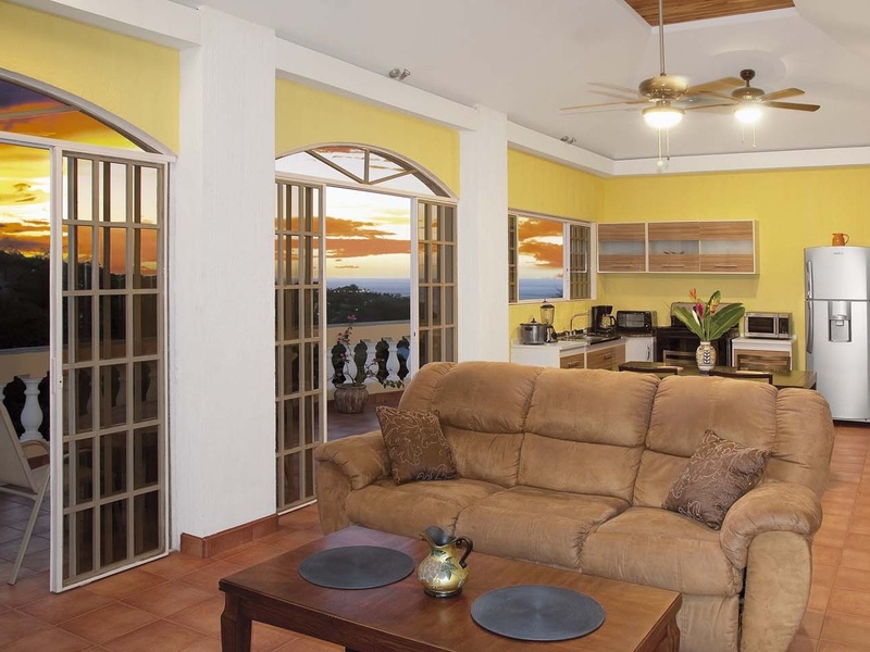 These apartments comprise a gorgeous, 3 story beautiful villa overlooking the pacific ocean and the mountains. It is a work of art, the best architectural creation at Ocotal Beach, with a spectacular ocean view. The complex offers 3 one bedroom apartments and 4 two bedrooms apartments, is ideal as a long and short term vacation rental business, each one has kitchen laundry room, Cable TV, Wireless Internet, fully furnished, a huge balcony where you can enjoy the wonderful sunsets from Ocotal Beach. Only 250 meters from beachfront, the large, fully furnished and equipped apartments open onto balconies through arched sliding french doors, you can sit on the terrace overlooking the ocean, and enjoy the natural breeze at the same time. The building has two pools, one big enough and one for kids and a water pump system. These unique ocean view rental apartments are large, built with great taste, spanish tiles, rare tropical hardwoods, and wonderful colors. It is located just 5 minutes driving to Playas del Coco, 10 minutes to Playas Hermosa and Playa Panama, 30 minutes to Playa Flamingo, Conchal and Brasilito and 1 hour from Tamarindo Beach, other service close to this buildin is CIMA Private Horpital just 20 minutes from this place, San Rafael Arcangel Hospital In Liberia just one hour from us. It is close to many national parks and white secluded beaches. Scuba diving, snorkeling, sportfishing and tours to national parks and volcanoes can be easily organized from la Loma del Atardecer.