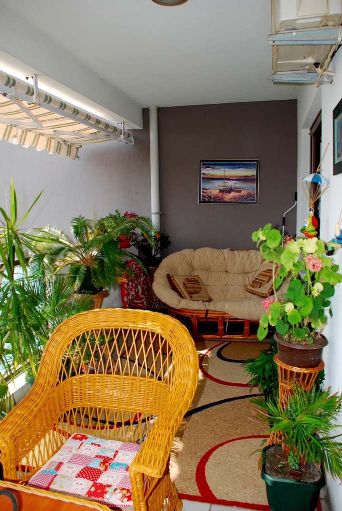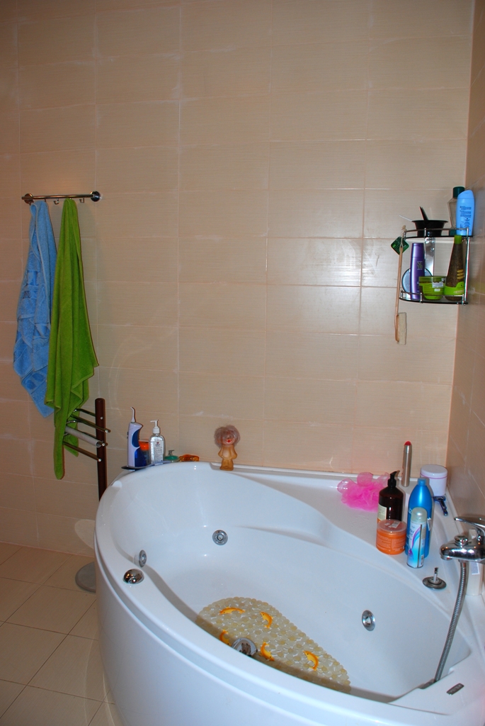 The apartment is fully furnished with high quality classic furniture, has two spacious hall, large living room with dining area and kitchen, which is separated by a breakfast bar. The apartment has three bedrooms, two bathrooms (one of them is equipped with a Jacuzzi and a shower), a laundry room with washing machine and built-in cupboards for storage of household equipment. Also, the apartment has two spacious terraces - 8 m2 and 12 m2. The large terrace - a beautiful and comfortable terrace furniture and sumptuous green garden with palm trees and flowers. The terrace offers panoramic views of the mountains and the sea.