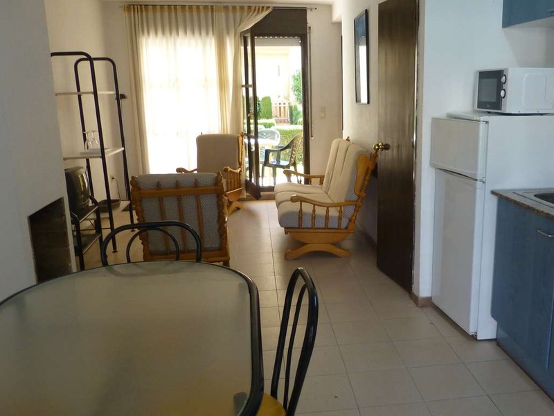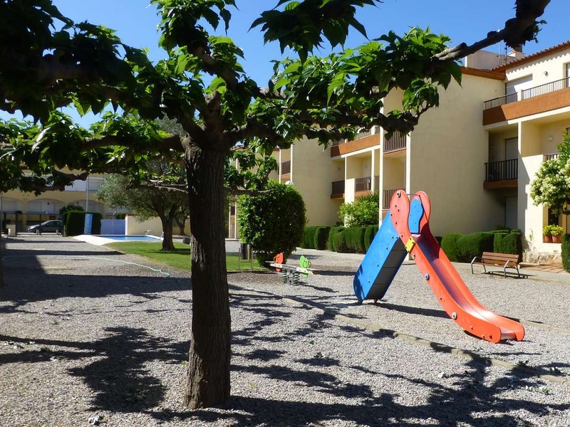 Duplex with 2 bedrooms, 2 private patios, in communal swimming pool, playground and parking, very well located, about 200m from the beaches of Ampurias, near the Old Town and supermarkets, composed of large living room with fireplace, exit to the terrace and private patio, kitchenette, 2 double bedrooms with fitted wardrobes, storage room, and bathroom. The duplex is sold furnished. Surface: 68m2 + terraces and patios.