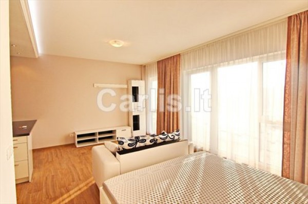 Продается просторная новая, отлично оборудованная 1-комнатная квартира на улице Видуно, в Пилайте (г. Вильнюс). Дом является новостройкой (2014 г.). Этаж 6 из 9. Общая площадь - 38,91 м². При оборудовании квартиры были использованы материалы высокого качества, встроены пластиковые окна (3 витринных), которые обеспечивают хорошую изоляцию. Во всей квартире установлен пол с обогревом (регулируемая, экономичная система). Очень маленькие комунальные платежи.