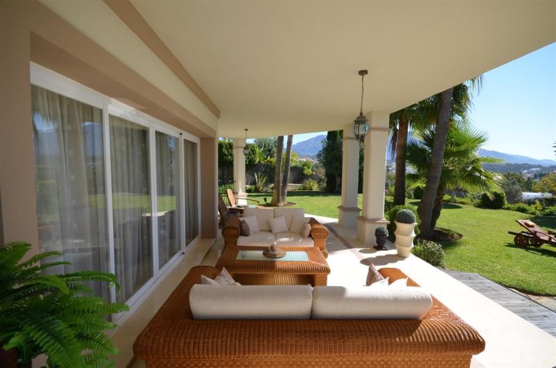 We offer a villa at an unbeatable price in the southern region of Spain, in the heart of Nueva Andalucia! The villa is built on a high level, equipped with central air conditioning with climate control in every room, the windows have electric shutters. It consists of two floors and a basement, which are linked by a beautiful spiral staircase. On the first floor there are: large entrance hall, guest toilet, a spacious living-dining room with fireplace, high ceilings and access to a large covered terrace with seating and dining area with access to the pool, fully equipped kitchen with appliances Bosch, dining room and bedroom with double bed with separate bathtub and shower with a balcony. The second floor includes two bedrooms with double beds and private bathrooms, as well as a master bedroom with fireplace, large walk-in closet and a bathroom with Jacuzzi and shower. Basement with natural light and ventilation, consists of a garage for 3 vehicles, fitness room, TV room and office. On the territory there are beautiful green areas with lawns and trees, as well as a beautiful swimming pool surrounded by lawn. Located in a highly desirable location, just minutes away from the Golf Club Las Brisas and only a five minute drive from Puerto Banus.
