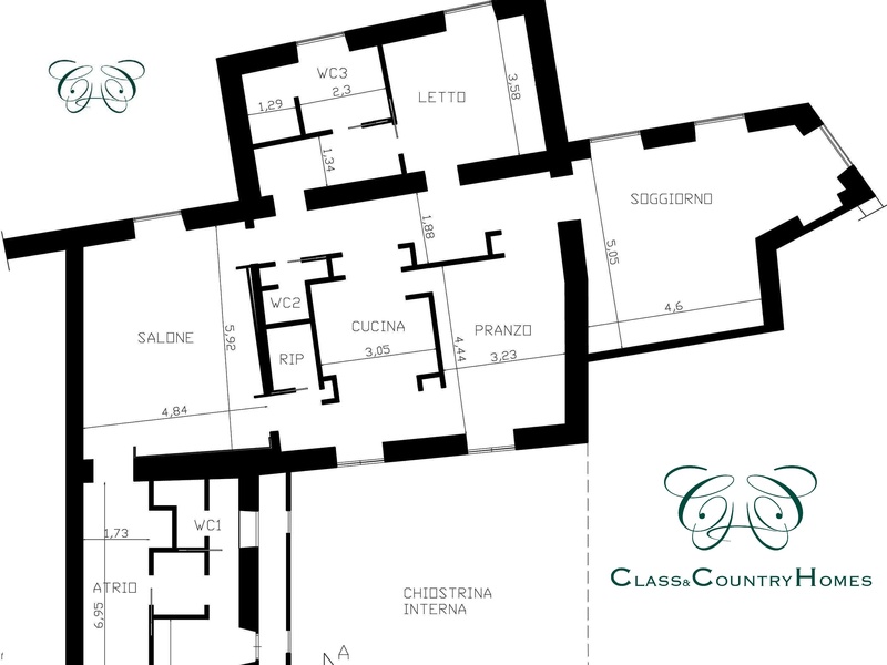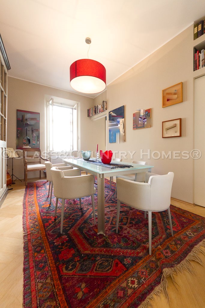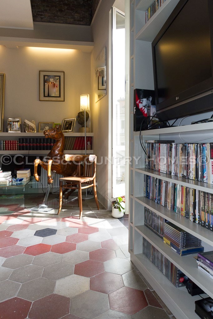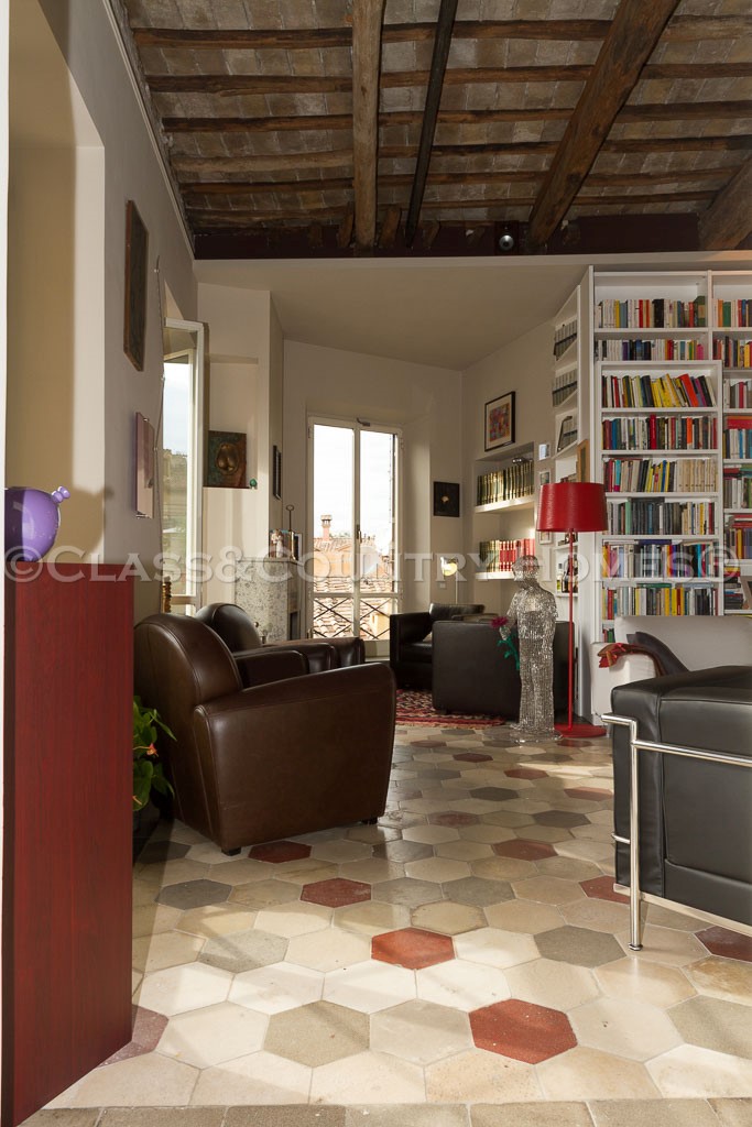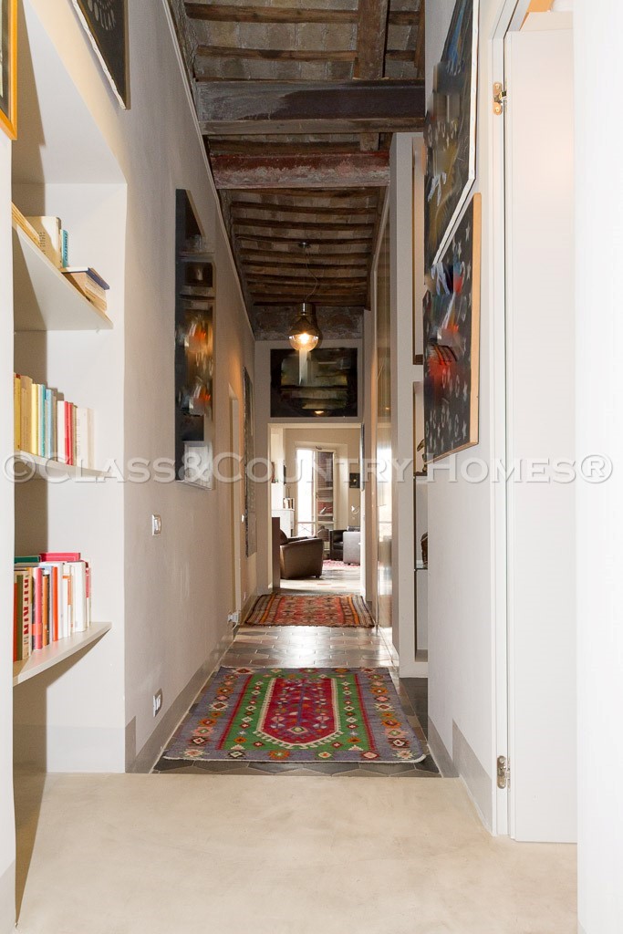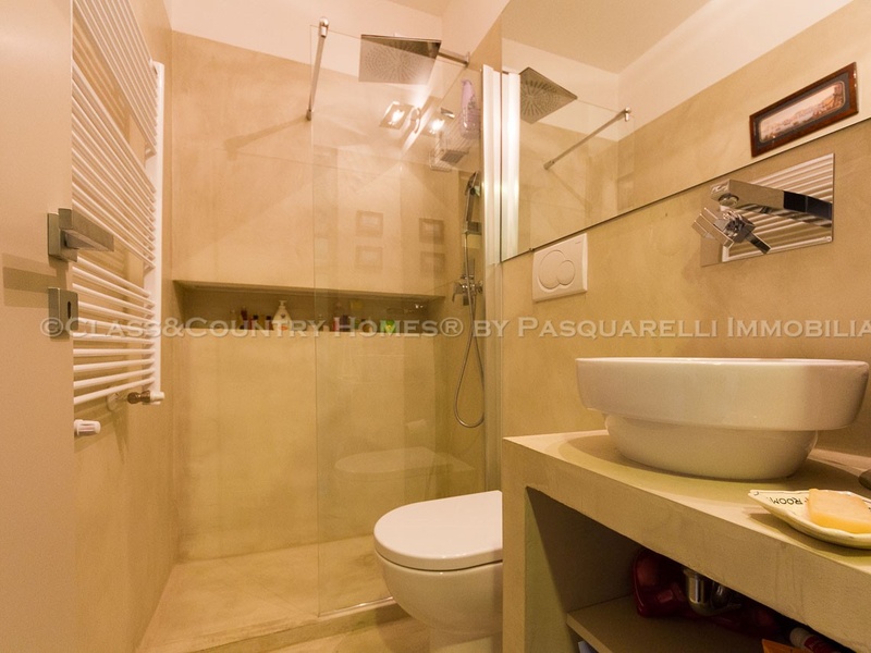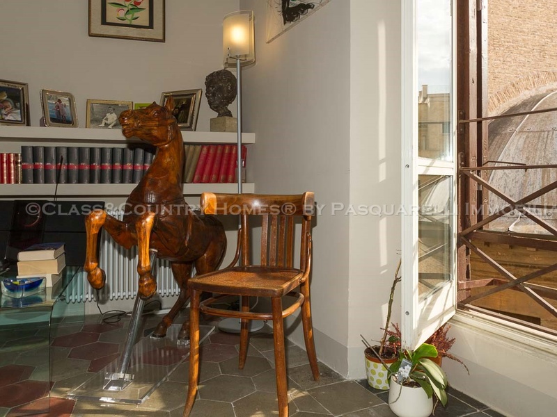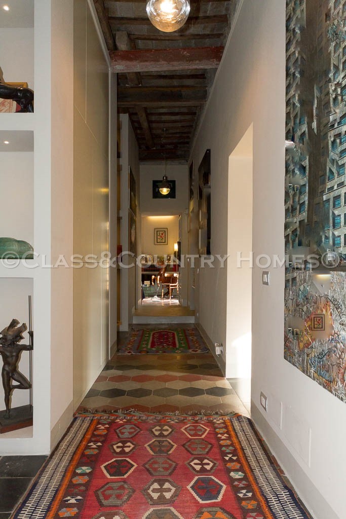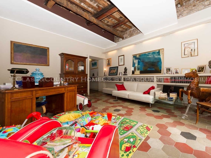 В последнем ремонте архитнкторам удалось сочетать использование новых материалов со старыми характерных особенностей, таких, как высокие потолки с деревянными балками и полом в стиле cementina . Квартира оснащена центральным отоплением. Имеется также удобный и сухой погреб