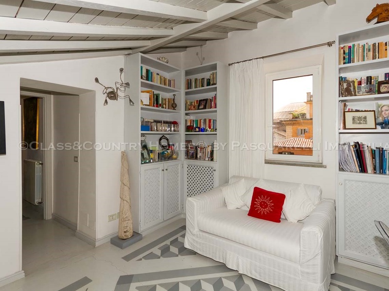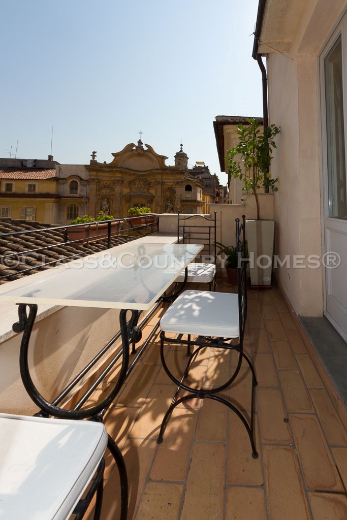 Пентхаус расположен на четвертом и пятом этажах в престижном, традиционном для центра Рима здании . Оригинально , со вкусом отремонтирован с использованием дорогих отделочных материалов в стиле ХVII века . На первом уровне две гостиные комнаты и большая столовая с уникальным видом на Пантеон и Пьяцца делла Маддалена , спальни с великолепным видом центра Рима и просторная ванная комната . Дизайнерская лестница ведет на второй этаж выполненный в современном стиле. Здесь рабочий кабинет, гостиная с видом на Пантеон, спальня с высокими потолками и ванной комнатой , небольшая терраса с видом на церковь Маддалена.Имеется также спальня с ванной и прачечной.