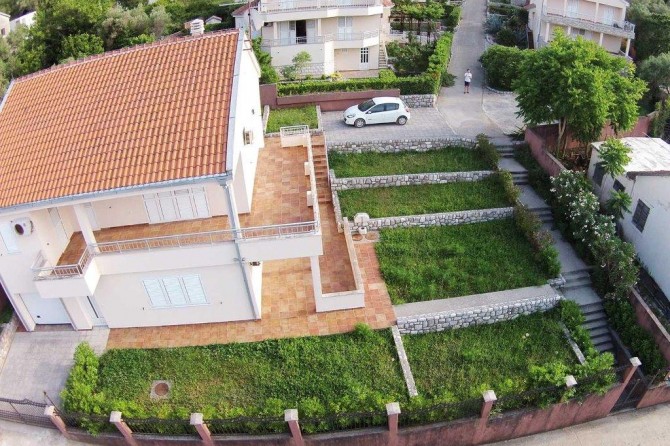 New villa with panoramic sea views, 20 meters from the shore in Krasici. The villa is located in the villa complex near the beach and a pier for yachts.