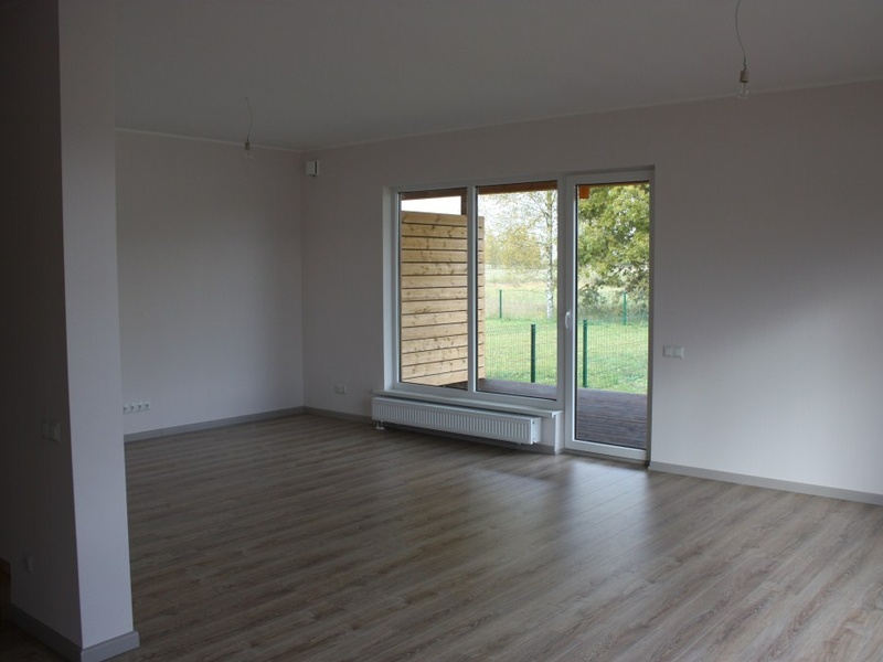 High quality semi-detached house with a wooden frame. High-quality exterior and interior finishing, good sanitary engeneering, painted walls, high-quality laminate floors.