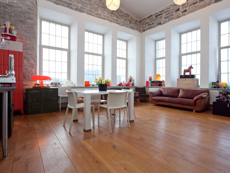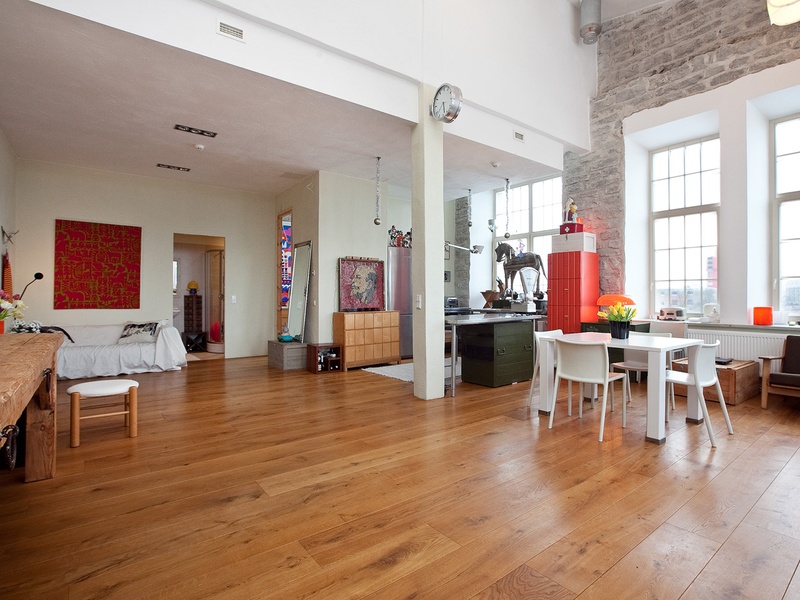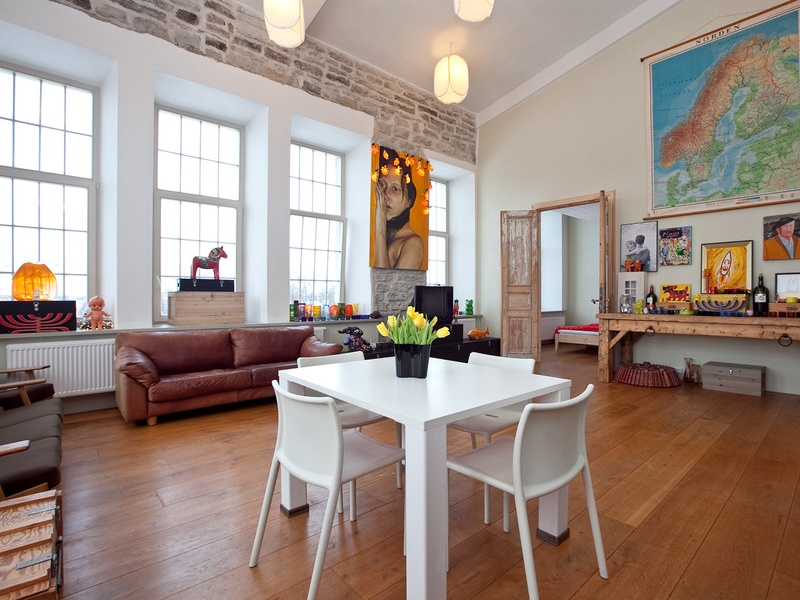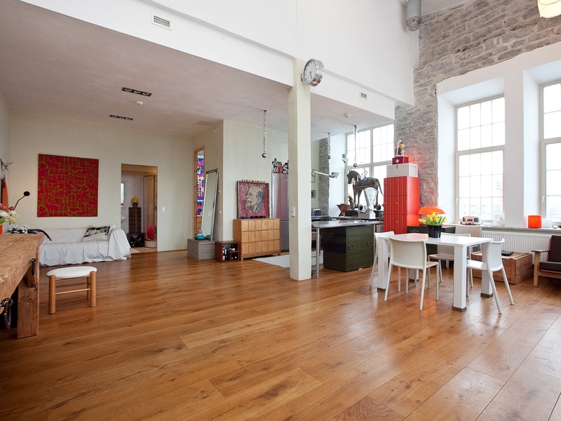 Flat for sale in Tallinn, the largest city and the capital of Estonia. The apartment is located on the 3rd floor of 3, has 6 rooms including 5 bedrooms, 1 living room, 2 bathrooms, 1 storage room (the size of the basement / storage room: 4.2 m2). The total area is 180 square meters. 2 parking spaces. Built in 2008, Building material: stone. Heating: gas. Doors: Historic wooden door. Windows: new wooden frame. Additional information: bath, wardrobe, internet, locked staircase, mailbox, door phone, shower, parking space in the building of the closed parking. Description: Unique apartment in a historic house, which is almost 100 years old, is an architectural monument. Historic architectural ensemble of renovated industrial and began a new life as a modern apartment building. The offered apartment - one of the best in the house. Spacious, warm and bright penthouse overlooking the three parties. The height of ceilings in the apartment type loft - about 5-6 meters, and the living room is spacious (68 m2 area). The apartment has 6 bedrooms and 2 bathrooms, 180 m2 (official area of 144 m2). The height of the apartment allowed to increase its area of 36 m2. In addition, the apartment belongs to the storage room the size of 4.2 m2 on the ground floor. The apartment is of high quality and original design - natural oak floor board width 26 cm, interior doors - doors of the restored historic mansion. It is possible to install a fireplace and a bath. In one of the bathrooms are two large windows. The area around the house is refined, in the courtyard of a children's playground and recreation area with benches. Exclusive offer of apartments on the market in Tallinn! Attention! The price includes two parking spaces in the building of the closed parking lot and a storage room in the basement. When buying a parking space separately, its price will be around 10 000 euros.