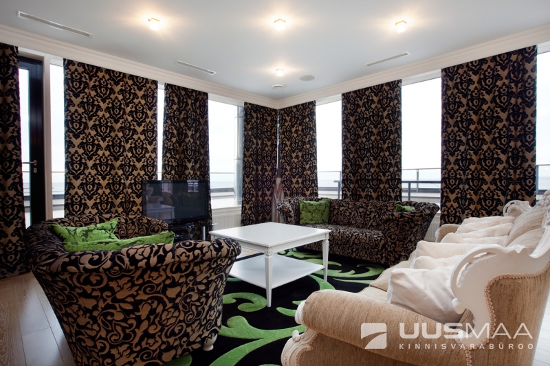 The apartment has plumbing Damixa, Grohe and Svedbergs, as well as massage shower Duschy. The price includes all furnishings, fixtures and curtains! The apartment includes a parking space in front of the house and pantry! Be sure to call and come to get acquainted with the apartment - this luxury apartment can become the new home for you! From the kitchen, living room and bedrooms have access to a spacious terrace from which you can enjoy superb views of the sea, sunsets and the panorama of Tallinn!