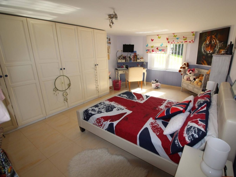 On the ground floor is a large bedroom with a bathroom. In every room of the house there are fitted wardrobes. The house is surrounded on all sides by a large garden with tropical trees, a swimming pool and barbecue area. There is also covered parking for two cars. The house is attractive for a permanent residence and in terms of investment.