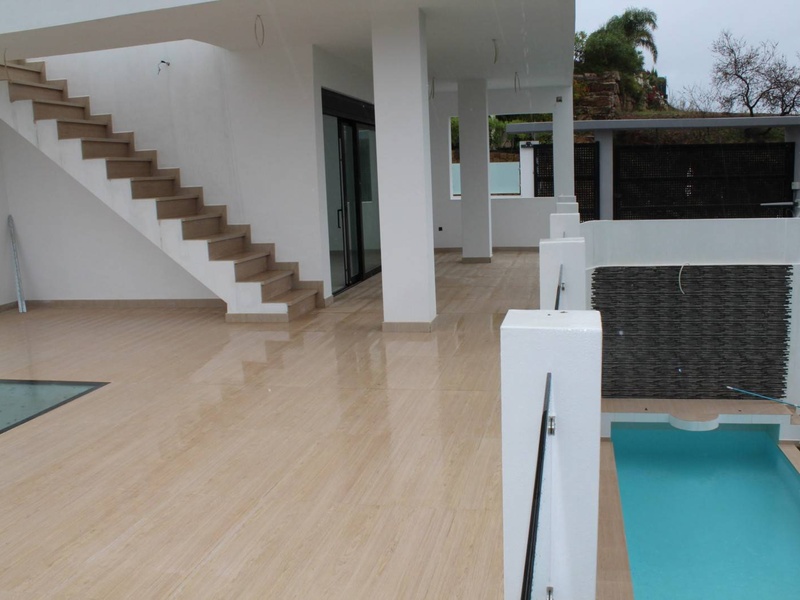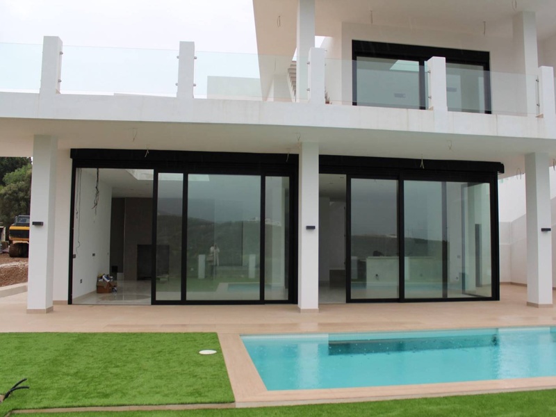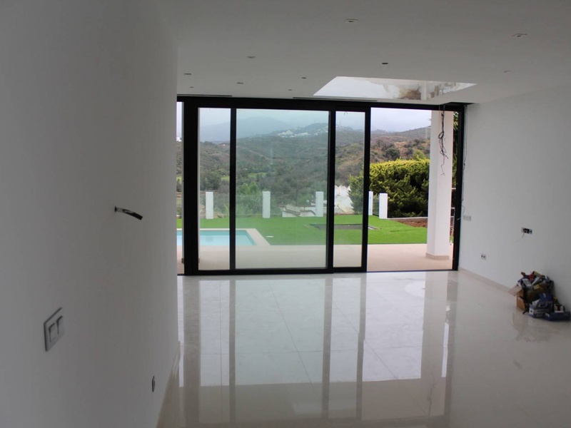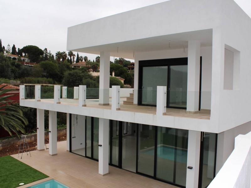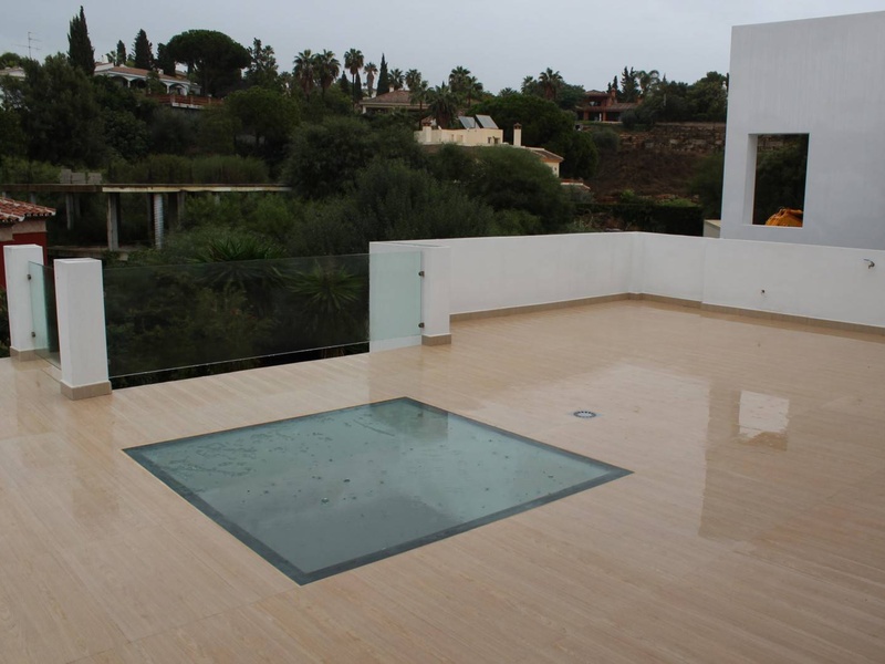This modern villa is located in the prestigious suburb of Marbella, and offers 1060 m2 of territory, of which 715 m2 is useful area. There are three floors, 5 bedrooms, 6 bathrooms and a 140 m2 basement. A vary spacious high quality fully equipped kitchen with modern facilities. The house has a lift and electric blinds thought out. Whole property benefits from marble flooring and for double-glazing with shatter resistant windows. In the grounds of the property, you can find a heated swimming pool and a Jacuzzi. There are a double garage and an ample parking space. The house has lovely mountain and golf views. The beach is only 5 minutes by car. The urbanisation El Rosario has its own restaurants, shops, public transport stops.