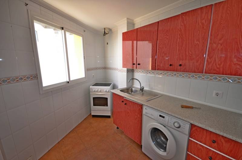 The apartment has 3 bedrooms, 2 bathrooms, a big salon and a separate kitchen with a small utility room. The master bedroom has a good size and an ensuit bathroom with marble floor and walls. The apartment has marble flooring and fitted wardrobes.