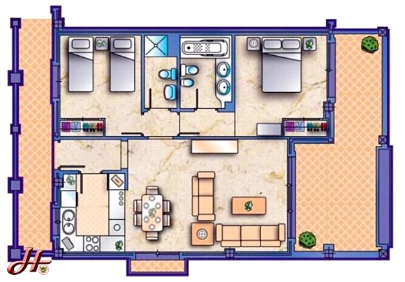 • 2 bedrooms,