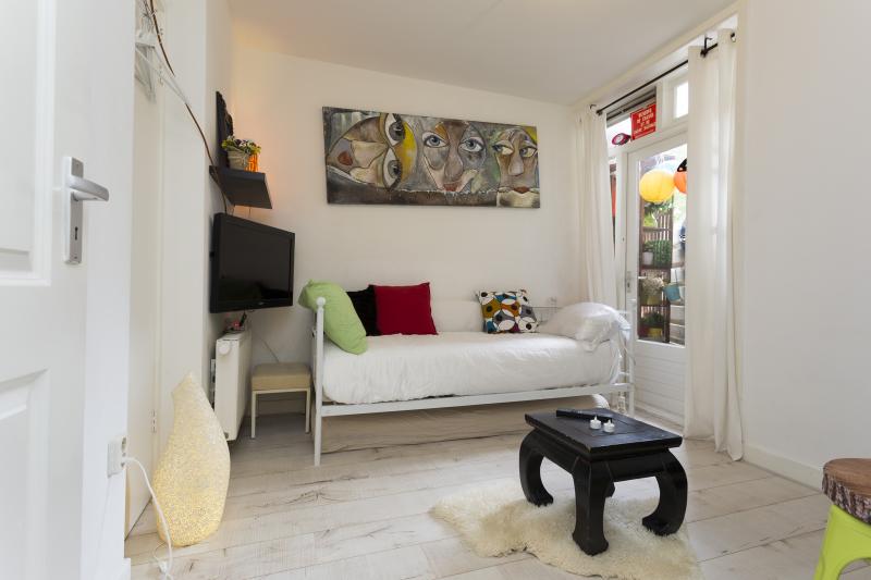 Flat for rent in Amsterdam, the capital and largest city of the Netherlands. It is the capital of the kingdom since 1814. Located in the province of North Holland in the west to the mouth of the river Amstel and the IJ. Amsterdam Nordsee channel connected to the North Sea, BEstevaerstraat 240 1055TT Amsterdam. The apartment is on the ground floor with 2 rooms, kitchen, shower room and toilet and a patio. Free Wi-Fi, coffee, tea, bed linen. Various bus and tram stops are located 120 meters from the apartment and offers direct access to Amsterdam Central Station and Dam Square within 10-15 minutes, you will find close to free storage for luggage and bicycles for rent. Price per night excluding VAT 5% € 150 euros (price in high season are different).