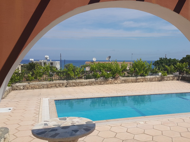 Very beautiful villa located in Karsiyaka 100 meters to the sea On a plot of 1 donum (1338m2) located villa 220 m2 3 bedrooms, 3 baths, spacious living room, kitchen Centralized heating system. Fireplace Pool B-B-Q Indoor garage Fruit trees in the garden (grapes, apple, fig, orange, lemon, cherry, apricot, peach ...)