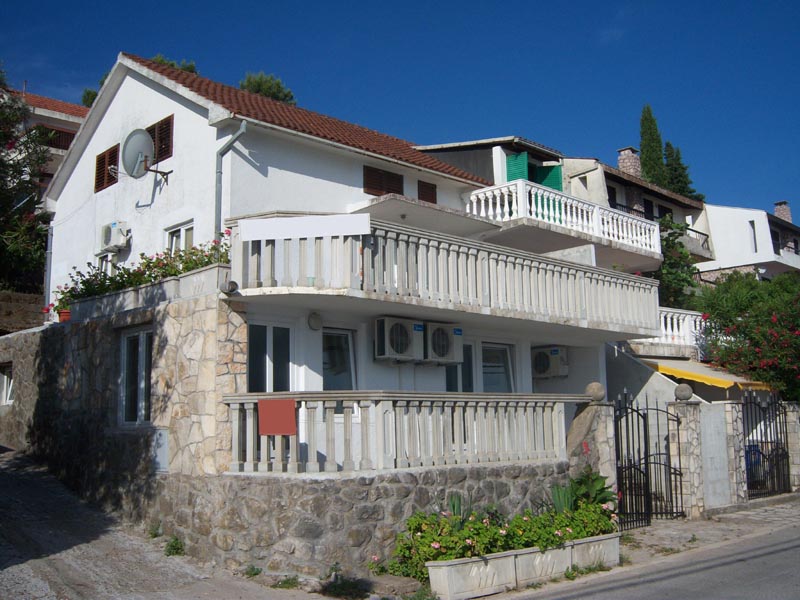 Тиват. Крашичи. 1 линия. Участок 166 кв.м, 2 эт. дом пл. 116 кв.м (1 этаж-3 апартамента, терраса; 2 этаж-кухня, 3 комнаты, санузел, терраса). Все коммуникации. Отличный вид на залив.