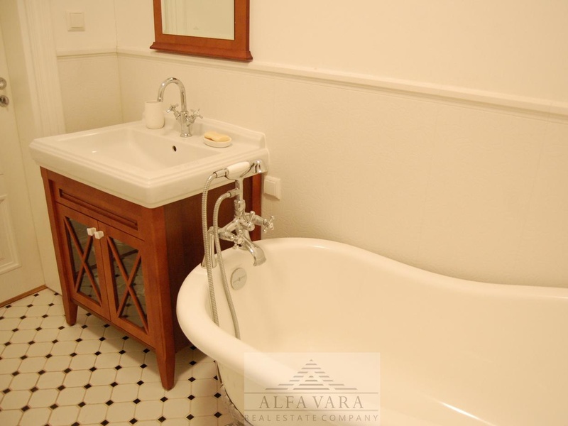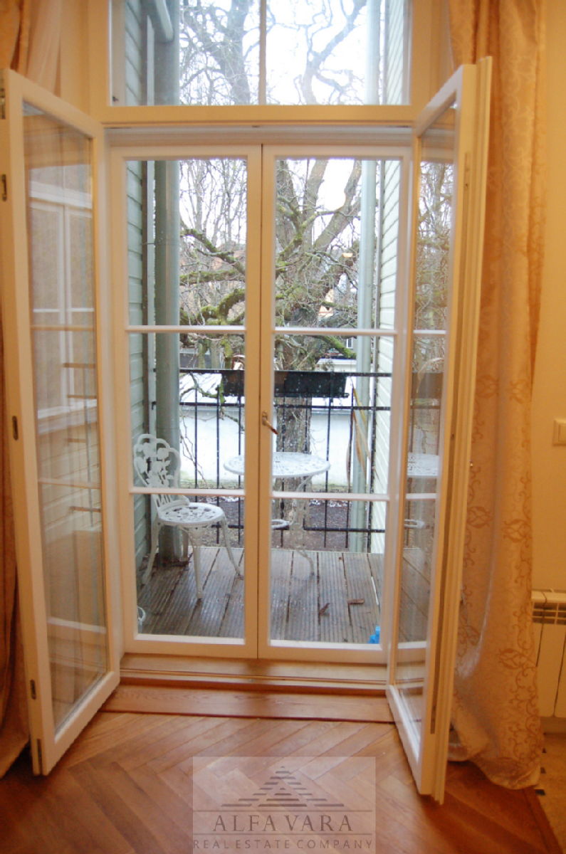 При работах по реконструкции сохранено все оригинальное и ценное, в то же время приняты во внимание современные требования к жилым помещениям. Во внутренней отделке сохранены высокие потолки, потолочные розетки, покрытая глазурованной плиткой печь/камин, использованы натуральные материалы. У квартиры 2 выхода - через подъезд со стороны улицы и со двора.