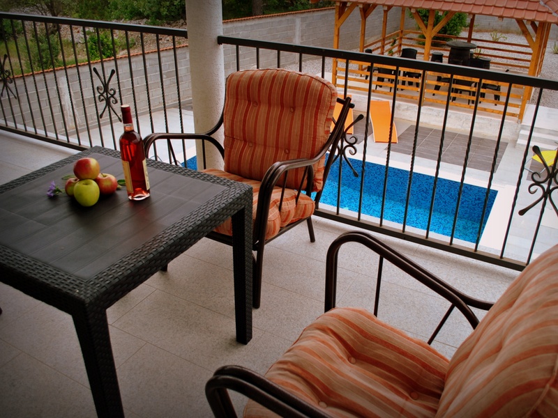 Отличный дом для отдыха большой семьей или компанией, рассчитан на 10 человек, находится в местечке Мркови, среди оливковых рощ и вековых деревьев – дубов и сосен. Участок, на котором он построен, площадью 491 м2, утопает в цветах и зелени. Во дворе вместительная беседка (30 м2), в тени которой можно уединиться с друзьями. Возле нее, во дворе, находится бассейн, который придётся кстати в летние жаркие дни. Бассейн оснащён осветительными приборами, создающие романтическое настроение вечером, а так же небольшая горка, которая наверняка порадует детишек.