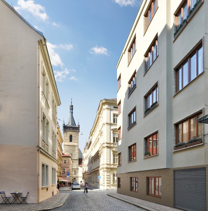 Продается новая квартира (2+кухня-ниша), расположенная на 2-м этаже жилого функционалистского дома, который проходит полную реконструкцию, с 11-ю парковочными местами в гараже и подвалами. Все это прямо в центре Праги, в тихой улице между станциям метро «Мустек» и «карлово намнести». Качественное и чувствительное обновление здания делает акцент на детали и сохранение оригинальных черт интерьера и декора, сверхстандартные материалы и обеспечение услугами рецепции. Проект предлагает в общей сложности 19 квартир различных размеров и планировок.