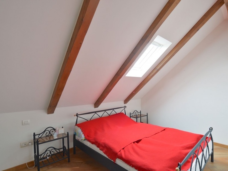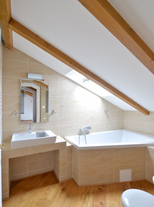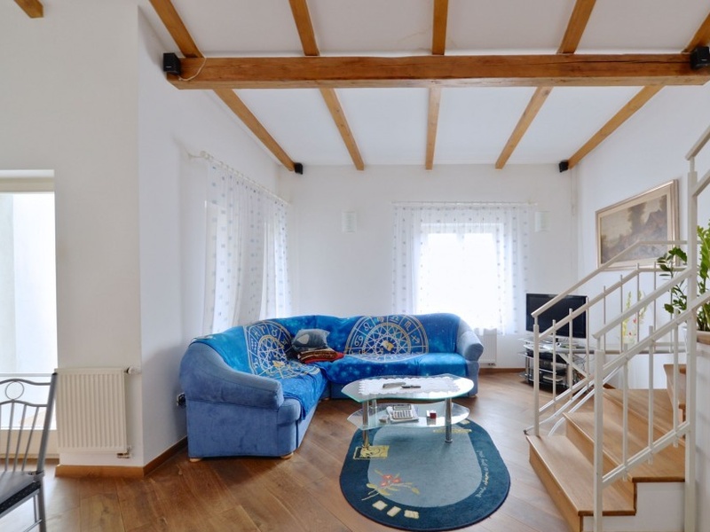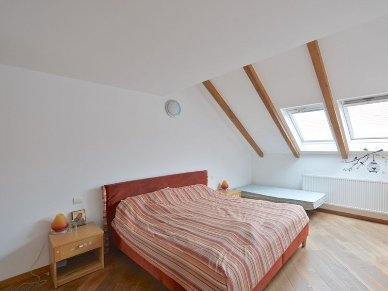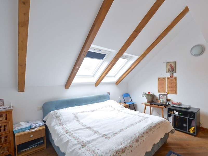 Интерьер этой двухуровневой квартиры состоит из гостиной с кухней, 3-х спален, 2-х ванных комнат, гардеробной и галереи. В квартире есть балкон, который ориентирован на зеленый двор. Оснащение квартиры включает в себя деревянный пол, новые деревянные евро окна и потолочные окна марки Velux, межкомнатные двери из массива дерева и входную дверь повышенной безопасности, индивидуальный газовый котел. Мансардная постройка с 2006 года.