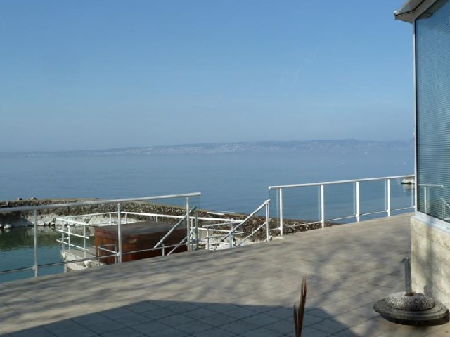 This handsomevilla is located on the shore of the Geneva lake, not far from the famousFrench city Evian-les-Bains, 40 minutes away from Geneva.
