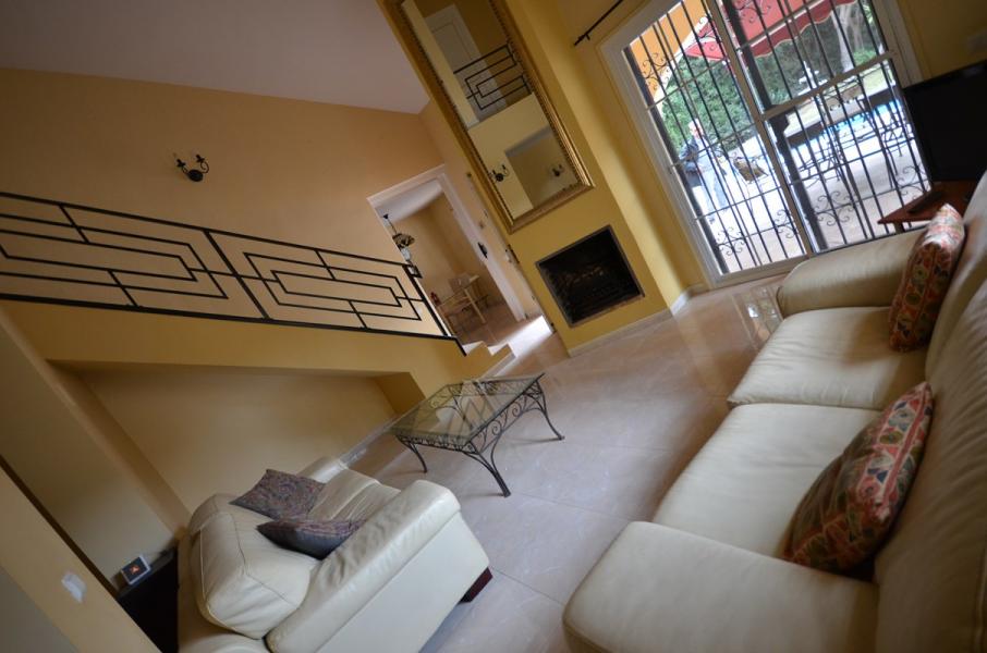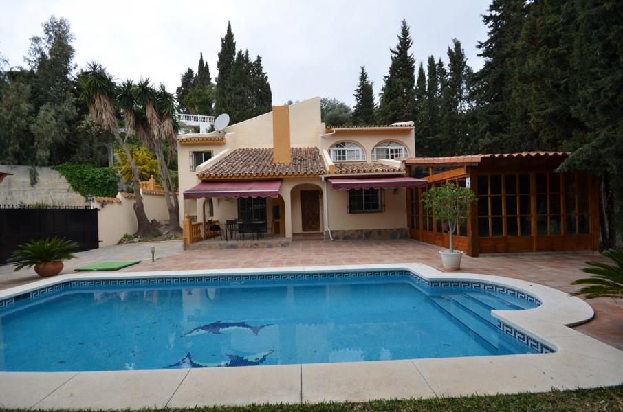 This beautiful and very private villa is located in a famous Mijas Campo urbanization . The villa has 2 floors, several terraces, a stunning wooden veranda, a private garden, 10x5 swimming pool. On the ground floor there are spacious living room with a fireplace, a dinning room, a kitchen with breakfast area and an access to the patio, a large utility room. On the first floor there are 3 bedrooms and 2 bathrooms. The villa has an A/C, a garage, marble floors, windows with double glassing. The property has original design with lots of light and space and a location in the privileged and quiet area within a 10-minute drive to the beach.