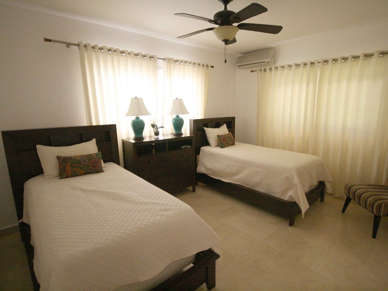 Two bedrooms, each with its own bathroom (one Queen and two Twin beds), living room, dining area, guest bathroom, kitchen, laundry area, maid's room with bathroom, large covered terrace, private swimming pool, BBQ area, covered parking for two cars.
