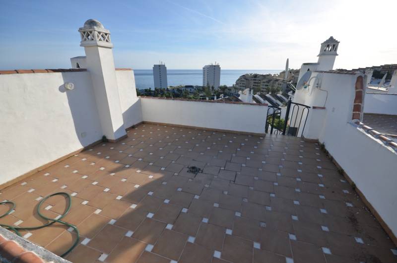 A beautiful townhouse with a fantastic sea views in one of the best places of Benalmadena Costa! First floor has a fully equipped kitchen, guest toilet room, spacious salon with a fireplace and an access to the terrace with a barbeque place and front sea views! The ground floor has small game room with a patio, 3 bedrooms and 2 bathrooms , a master bedroom with en suite bathroom and an access to the garden! From the terrace of the first floor there are stairs to the upper floor where you can see a beautiful sea views. The house has air conditioning.